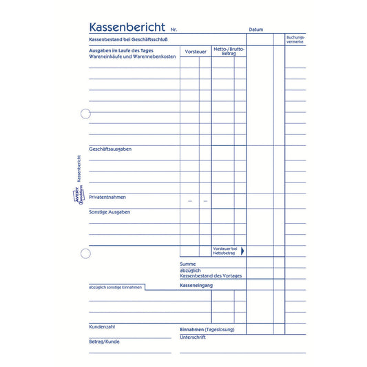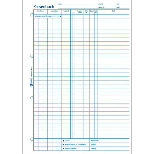 AVERY Zweckform Kassenabrechnung MwSt. Spalte für Einnahmen und Ausgaben Blaupapier DIN A4