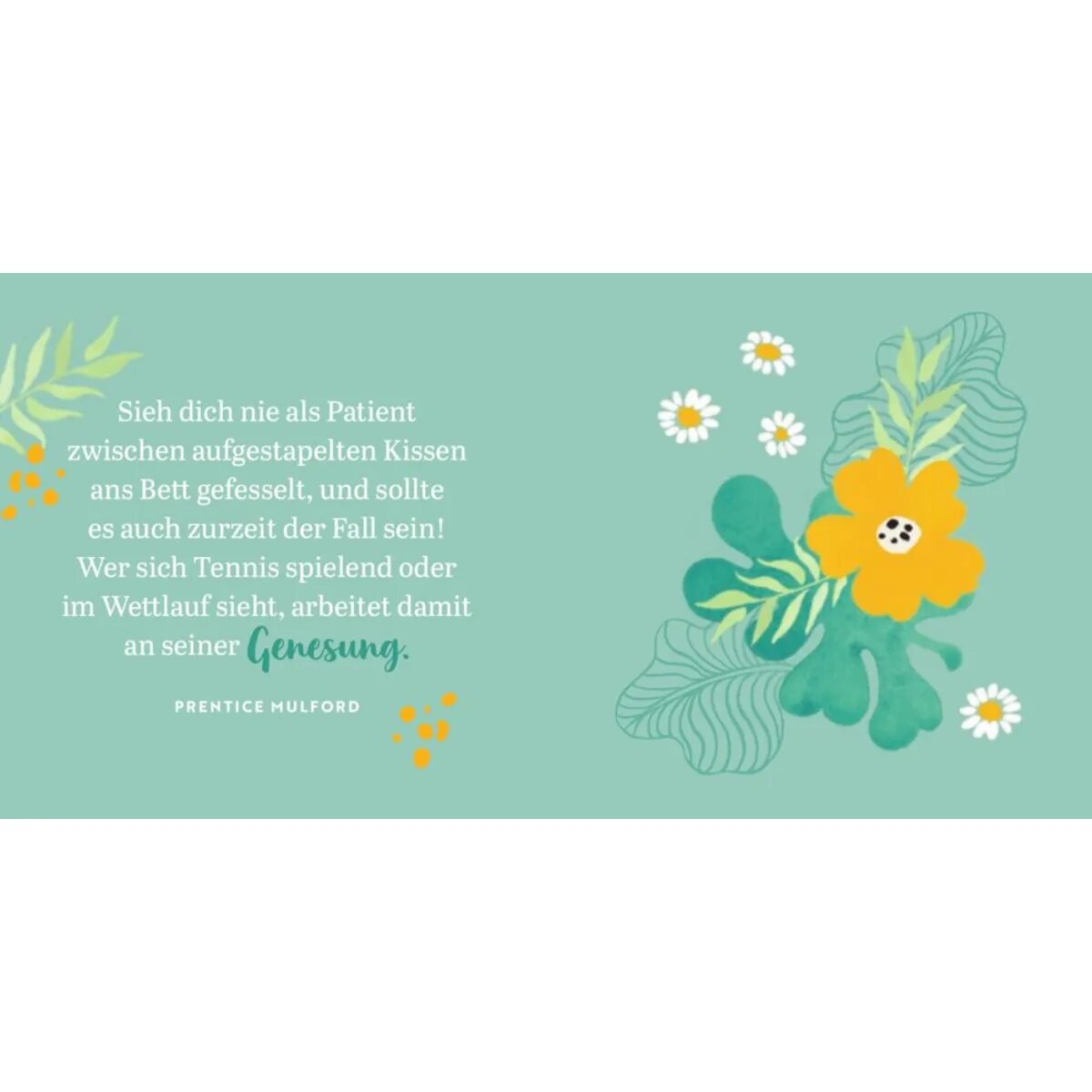Manchmal können schon kleine Gesten helfen, damit es einem Menschen besser geht. Und ein liebevolles Geschenk ist eine der schönsten Gesten! Die Gedanken und Gedichte in diesem bibliophil gestalteten Buch schenken Aufmunterung, Zusicht und positive Energie. Ein tolles Mitbringsel für alle, denen wir eine gute Gesundheit wünschen.