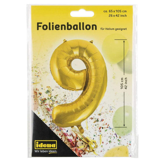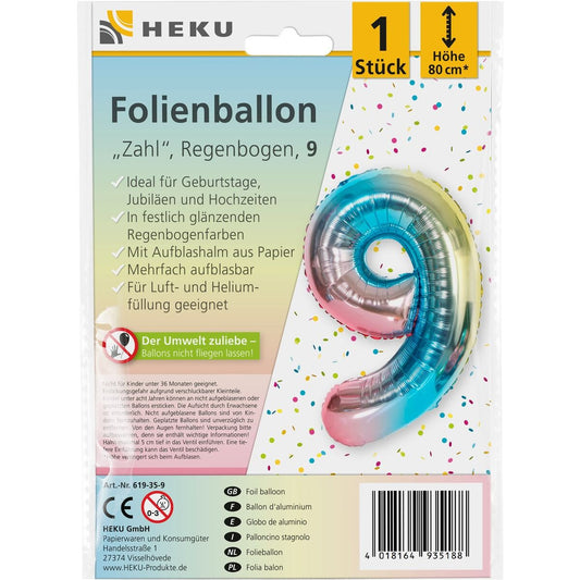 Folienballon Regenbogen Zahl 9 80cm mit Aufblashalm