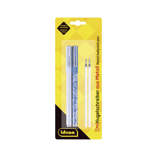 Idena Kugelschreiber Metall 2 Stück mit 2 Ersatzminen Schreibfarbe schwarz