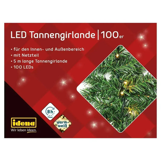 Idena Tannengirlande 100 LED warmweiß 5m für Innen & Außen