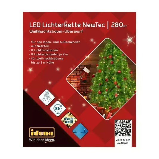 Idena Lichterkette NewTec Weihnachtsbaum-Überwurf 280 LED warmweiß für Innen & Außen
