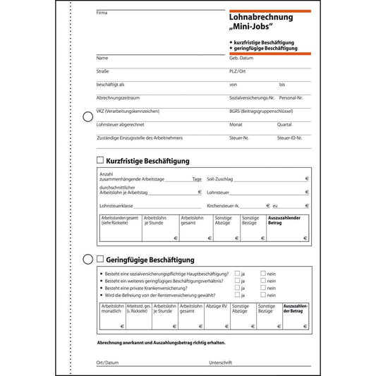 Sigel Lohnabrechnung für "Mini-Jobs" LO519 A5, mit Blaupapier, 50 Blatt