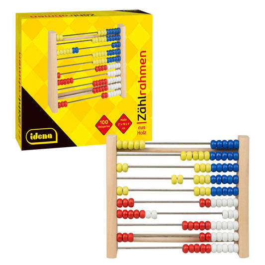 Idena Zählrahmen aus Holz mit 100 aufgefädelten Perlen in 4 Farben