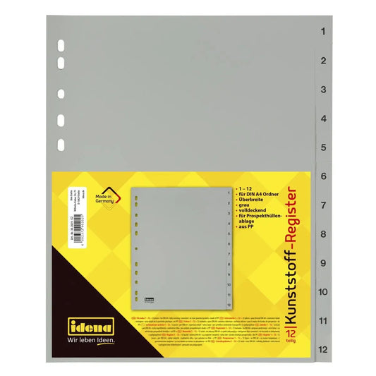 Idena 302029 Pp-Register A4 1-12 Überbr.,grau,12tlg,120Mµ