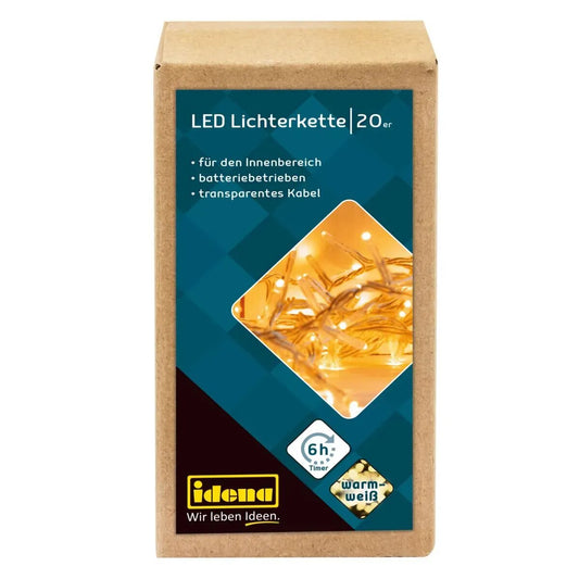 Idena Lichterkette 20 LED warmweiß 6h Timer 1,8m
