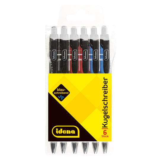 Idena Kugelschreiber blauschreibend schwarz/rot/blau 14cm 6 Stück