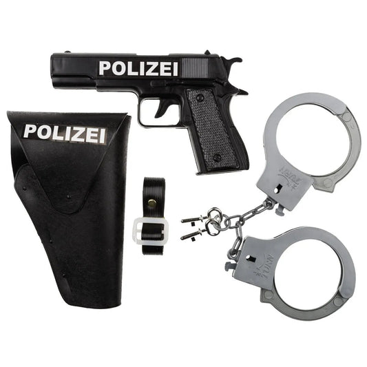 Idena Polizei Set Pistole Pistolenhalfter und Handschellen schwarz/grau 3 Teile