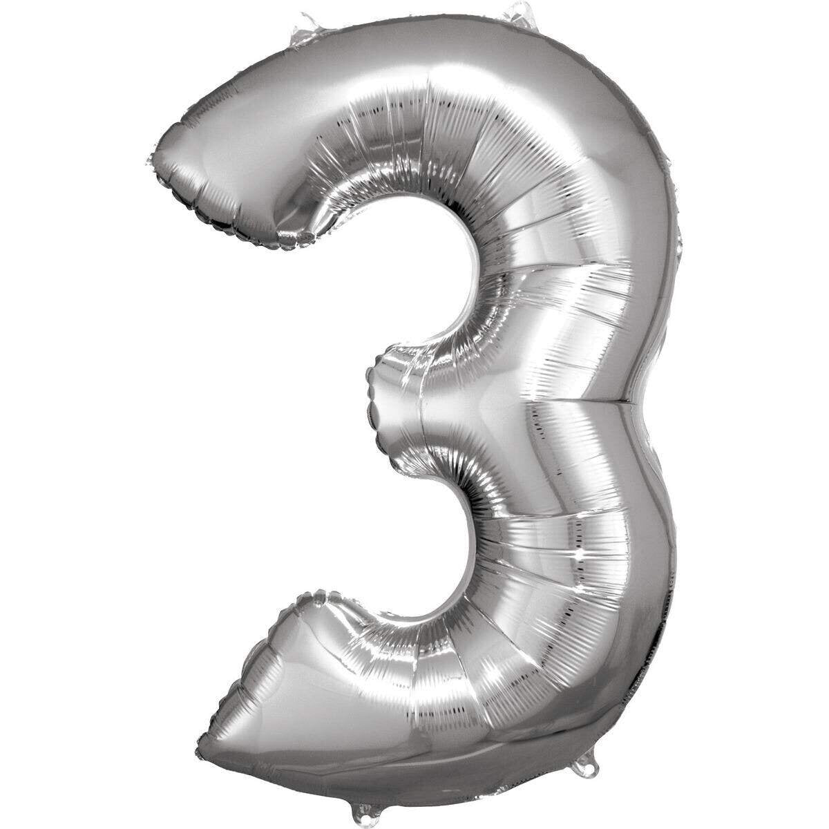 amscan Folienballon Zahl 3 silber