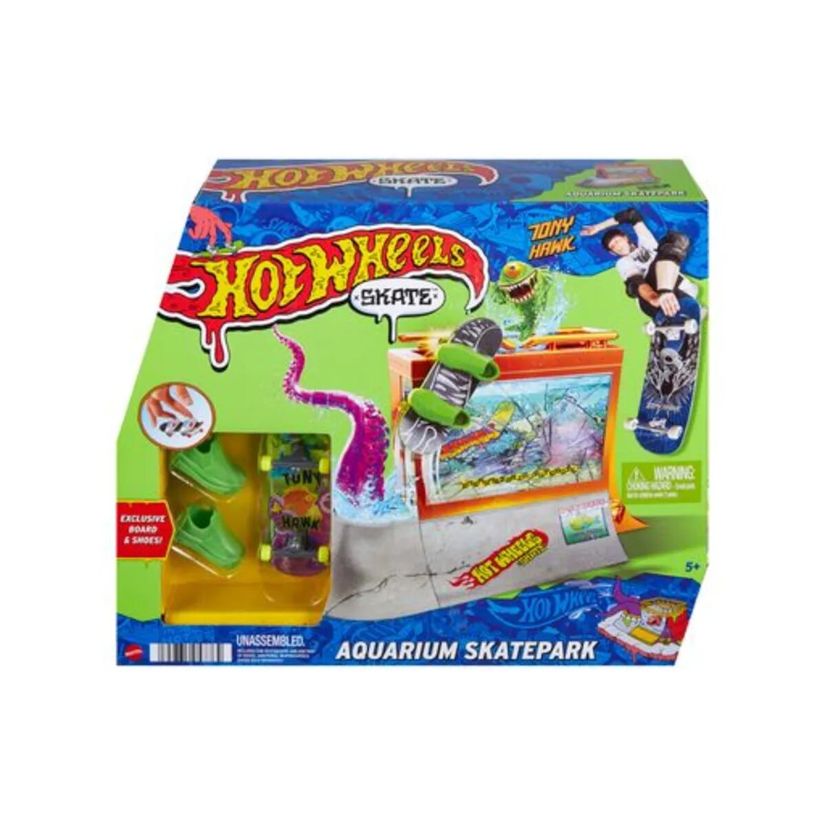 Auf diesem Hot Wheels Skate Skaterampenset können epische Fingerboard-Fähigkeiten bewiesen werden. Jedes Set stellt eine coole Szene dar und enthält ein exklusives Fingerboard, das in Zusammenarbeit mit dem legendären Tony Hawk entworfen wurde. Dazu gehört auch ein Paar abnehmbare Skateboard-Schuhe, mit denen Anfänger das Board kennenlernen können. Die Sets bieten Geländer für Grinds, Rampen für 360-Flips und große Flächen für Ollies. Alle Artikel separat erhältlich. Abweichungen in Farbe und Gestaltung vorbehalten.