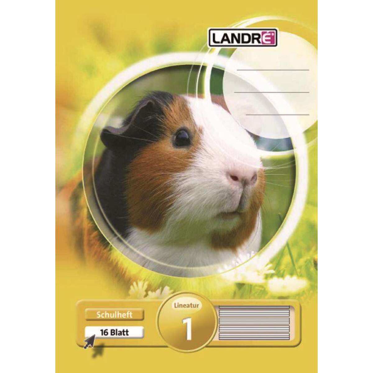 Landré Schulheft Tiermotiv A5, liniert, Liniatur 1, 16 Blatt, sortiert