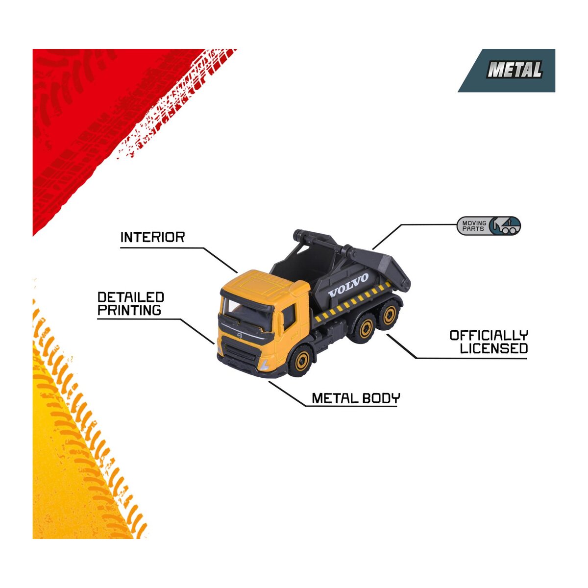 Majorette Auto Volvo Construction Premium (1 Baustellenfahrzeug) - Spielzeugauto aus Metall mit Freilauf & beweglichem Teil, zufällige Auswahl aus 6 Baufahrzeugen für Kinder ab 3 Jahre, 7,5 cm