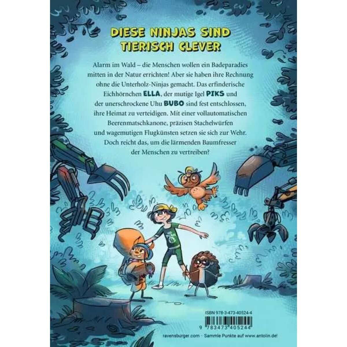 Alarm im Wald – die Menschen wollen ein Badeparadies mitten in der Natur errichten! Aber sie haben ihre Rechnung ohne die Unterholz-Ninjas gemacht. Das erfinderische Eichhörnchen Ella, der mutige Igel Piks und der unerschrockene Uhu Bubo sind fest entschlossen, ihre Heimat zu verteidigen. Mit vollautomatischen Beerenmatschkanonen, präzisen Stachelwürfen und wagemutigen Flugkünsten setzen sie sich zur Wehr. Doch reicht das, um die lärmenden Baumfresser der Menschen zu vertreiben?