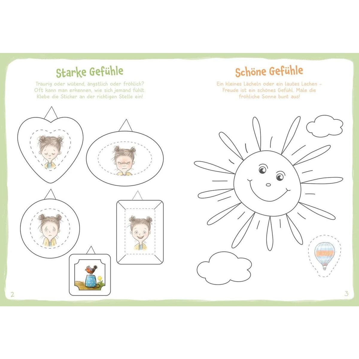 Im einen Moment wütend, danach wieder strahlend froh: Freude, Wut und Angst sorgen für viel Wirbel im Alltag der Kinder und gehören einfach dazu. Mit ersten Rätseln, bunten Stickern und tollen Ausmalbildern lernen die Kinder spielerisch Gefühle kennen und einzuordnen. Eine tolle Beschäftigung auch für unterwegs oder als Mitbringsel für Kinder ab 3 Jahren.